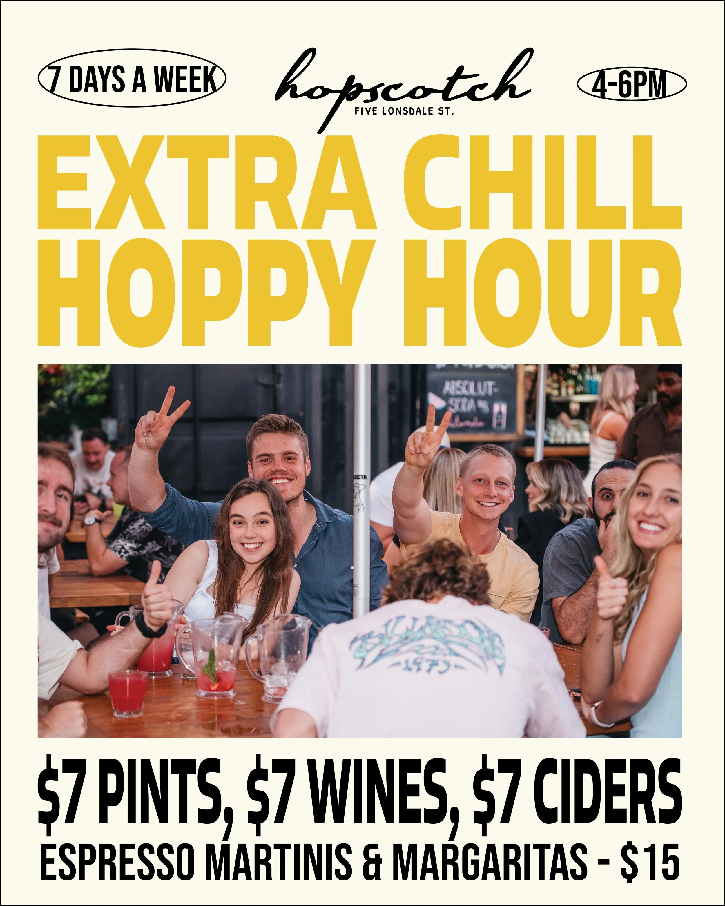 Raise a glass to the best deal in Braddon! Enjoy $7 pints, wines, and ciders, plus $15 espresso martinis and margaritas every day from 4–6pm. Whether you’re winding down after work or kicking off a night out, there’s always a reason to celebrate at Hopscotch. Cheers!